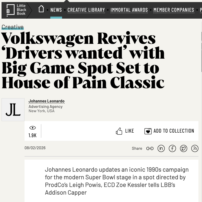 We’re at a cultural inflection point that feels a lot like the mid-’90s and early 2000s. In 2026, so much of life is passive, heads down, following someone who’s following someone else.Volkswagen has always stood for people who see the world differently. Right now, we need those cultural drivers more than ever – those people who participate, take chances, and get involved. Bringing back ‘Drivers wanted’ was our way of re-issuing that invitation: don’t just go along for the ride, drive.